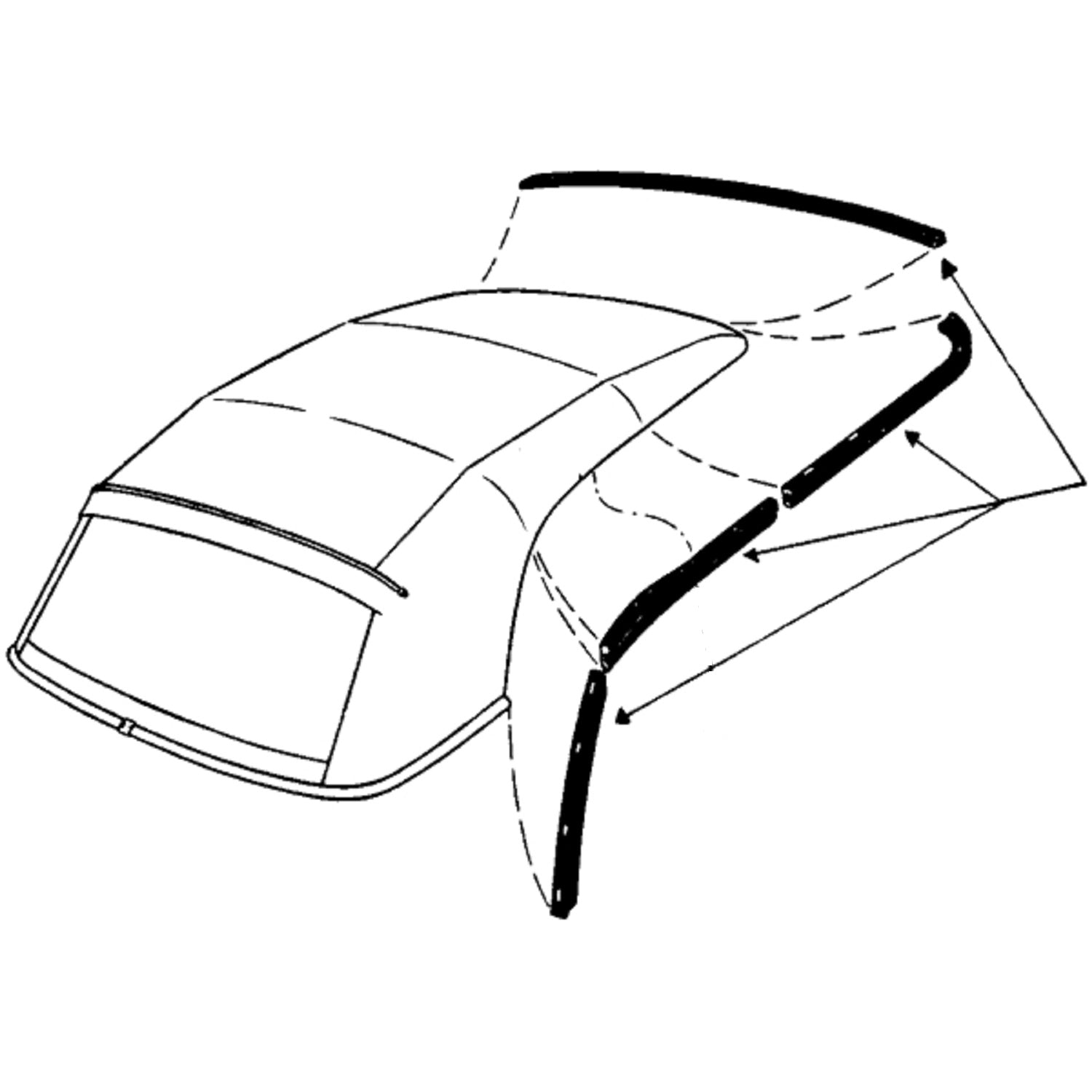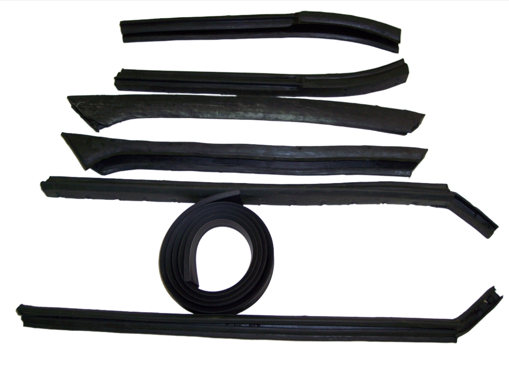 Is your hair blowing in the wind even when your convertible top is up?  We have the solution for you, this is a complete 10 piece convertible top weatherstrip kit for your 1963-1965 Ford Falcon & Mercury Comet convertible.  This set includes double header seal (where the top frame meets the top of the windshield frame) as well as the seals that go down both sides of the convertible top frame, where the side windows seal against the convertible top frame.  This set is an excellent reproduction of the original with molded in steel cores and threaded studs and will fit great.