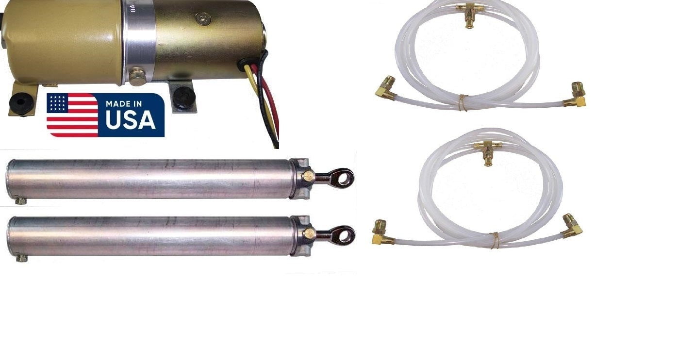 Is the convertible top on your 1964-1965 Ford Falcon Futura or Falcon Futura Sprint slowing down, not working at all or maybe going through a complete restoration? We may have the solution for you, this is a direct replacement convertible top hydraulic pump, 2 lift cylinders and hoses made just for your car. At Convertible Top Specialists we make many of our own brackets for the pumps to make them fit like the original, there is no reason to use a 'generic' or 'universal' pump when you can use one of our pumps made just for your car. Our lift cylinders are made by the same original equipment supplier who made the cylinders for your car when it was new and they are made right here in the USA!