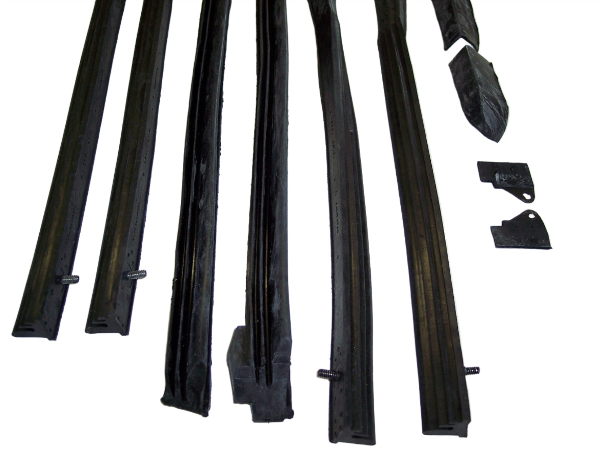 This is a pair of roof rail seals for the 1966 Fairlane, Mercury Comet. The roof rail seals start at the front edge of the door glass and follow the roof line to the back, the door glass seals to them when you roll the window up. This seal may require weatherstrip adhesive (not included), we do have weatherstrip adhesive available.
