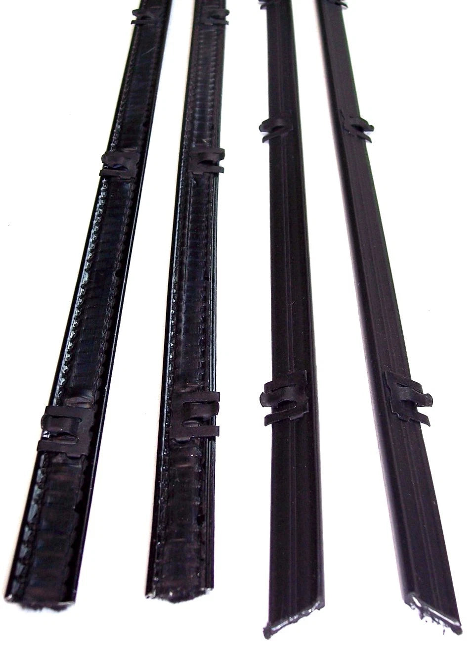 This is a 4 piece set of window sweeps (also called belt line moldings, dew wipes, felts or fuzzies) is for the 1967-1972 Chevrolet C10, C20, C30, K10, K20 & K30 pickup truck, this is the style with the black bead, not the style with a chrome bead. The window sweeps attach to the top of the door on the outside and the top of the door on the inside, they wipe or sweep the door glass as you roll the window up and down. If your windows are loose or if they rattle then this could be the problem, they also help keep water and debris out of the doors so they won't rust out.