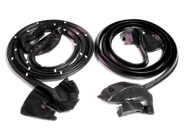 This is a pair of door seals for the 1969-1970 Pontiac Bonneville, Catalina, Executive; Olds 98, Delta 88; Cadillac Calais, Deville; Chevy Caprice, Impala, SS; Buick Electra, Lesabre, Wildcat 2 door hardtop (the hardtop does not have a post between the front & rear doors). The door seals attach to the door and have the proper molded ends and corners, they come with the attaching pins already installed. This seal may require weatherstrip adhesive (not included), we do have 3M weatherstrip adhesive available in our eBay store.