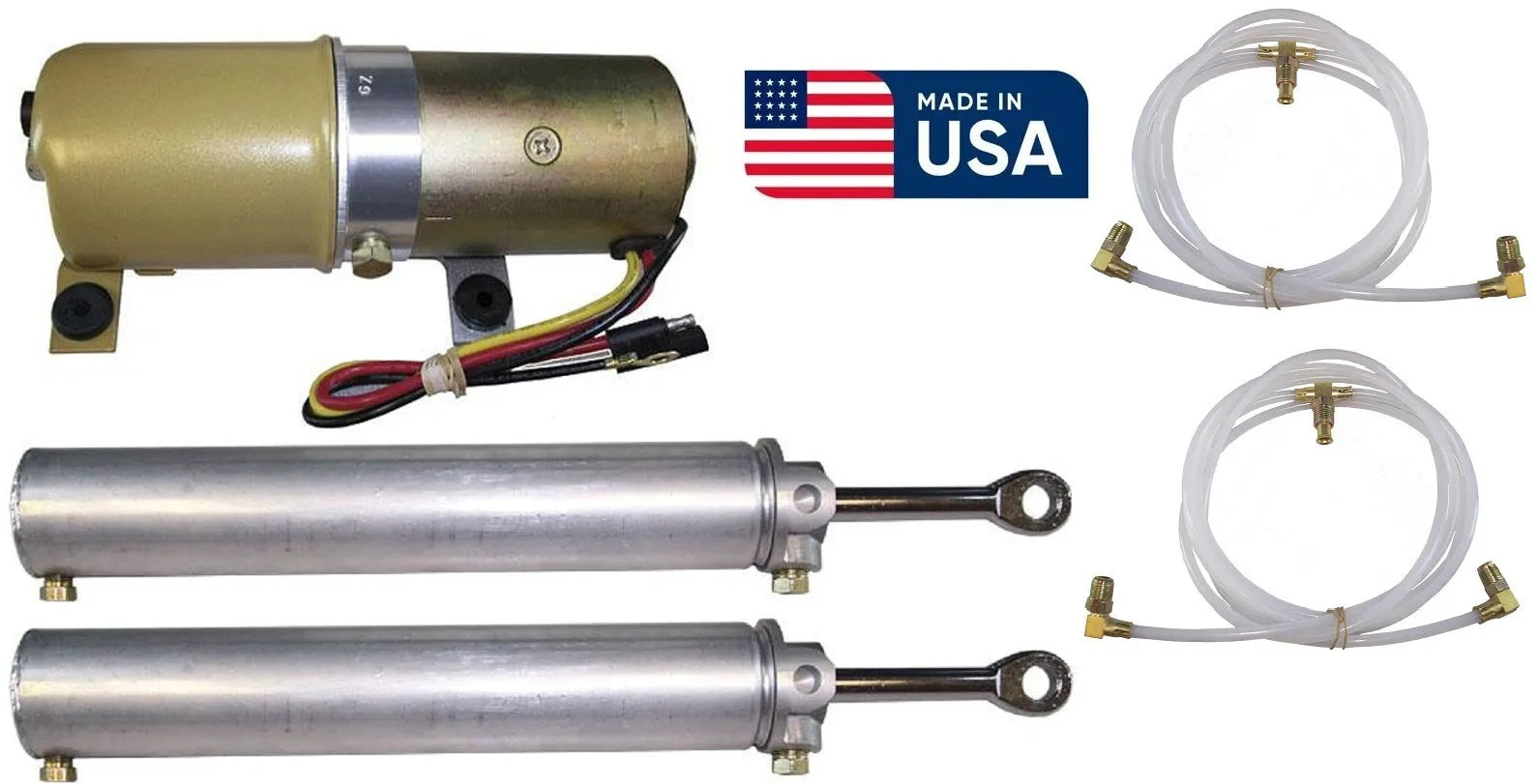 Is the convertible top on your 1971-1973 Ford Mustang or Mercury Cougar & XR-7 slowing down, not working at all or maybe going through a complete restoration? We may have the solution for you, this is a direct replacement convertible top hydraulic pump, 2 lift cylinders and hoses made just for your car. At Convertible Top Specialists we make many of our own brackets for the pumps to make them fit like the original, there is no reason to use a 'generic' or 'universal' pump when you can use one of our pumps made just for your car. Our lift cylinders are made by the same original equipment supplier who made the cylinders for your car when it was new and they are made right here in the USA!