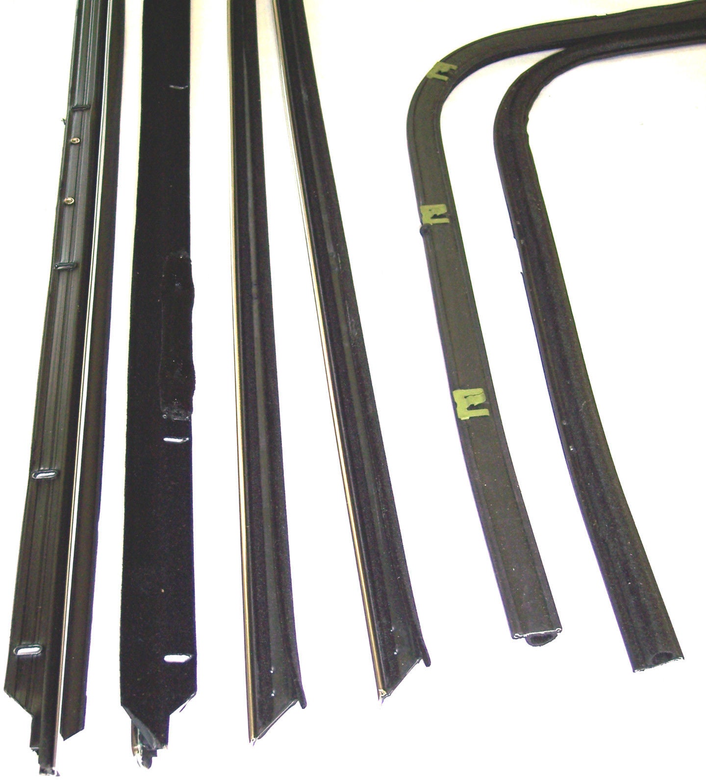 Convertible Top Specialists has available a 8-piece window sweep set (also called belt lines, dew wipes, felts or fuzzies) made just for the Impala and Caprice convertible, this set covers the inside and the outside of both doors as well as the insides and outside of both rear quarter windows. This set has the chrome attached to the window sweep on the inside and the outside, just like original. The window sweeps are the rubber pieces that touch or 'sweep' the glass as you roll the windows up and down, they attach to the top of the door on the outside and the top of the door panel on the inside.