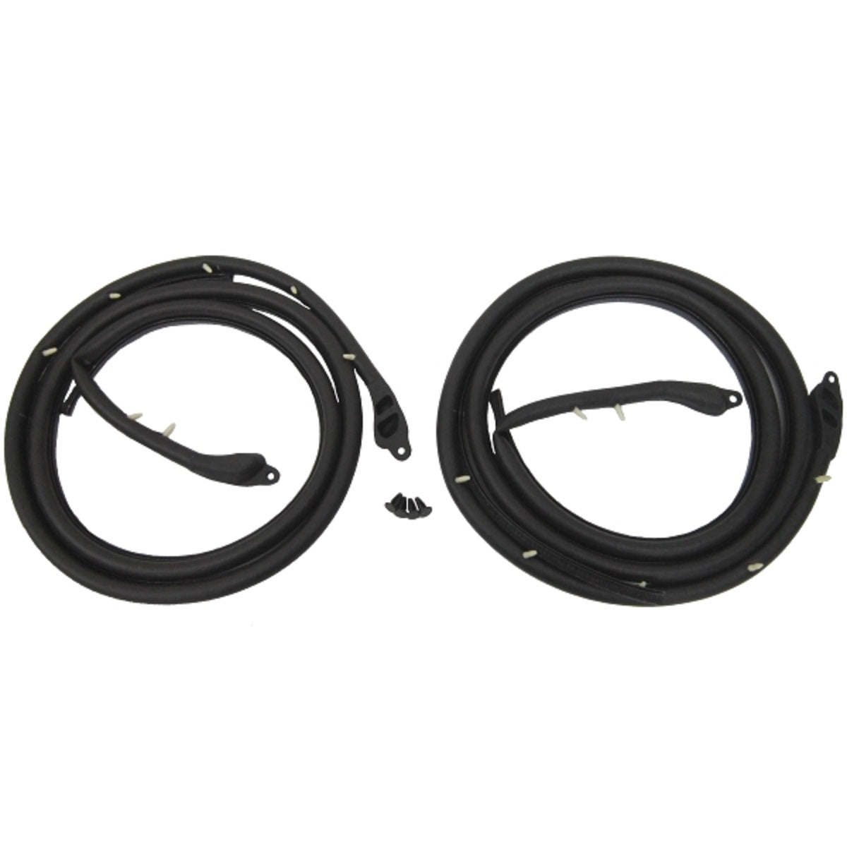 This is a pair of roof rail seals for the 1972-1976 Ranchero The roof rail seals start at the front edge of the door glass and follow the roof line to the back, the door glass seals to them when you roll the window up. This seal may require weatherstrip adhesive (not included), we do have weatherstrip adhesive available.