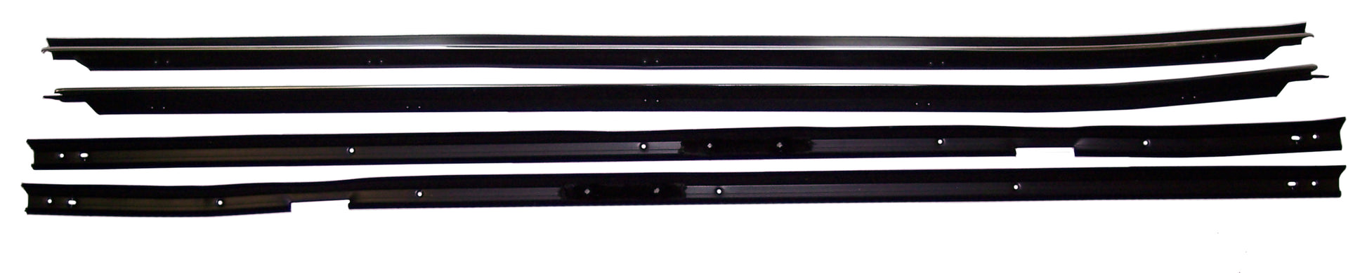 The window sweeps (also called dew wipes or felts) go horizontally across the top of the doors and touch the inside and outside of the glass, they keep the windows from rattling and 'wipe' the glass as it is rolled up and down. This set is contains 4 pieces to cover both doors on the inside and outside, without chrome on outer sweep, made just for your 1977-1979 Pontiac Bonneville 2-door Hard Top.