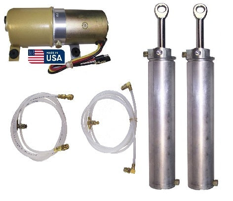 Is the convertible top slowing down, not working at all or maybe going through a complete restoration? We may have the solution for you, this is a direct replacement convertible top hydraulic pump, 2 lift cylinders and hoses made just for your car. At Convertible Top Specialists we make many of our own brackets for the pumps to make them fit like the original, there is no reason to use a 'generic' or 'universal' pump when you can use one of our pumps made just for your car. Our lift cylinders are made by the same original equipment supplier who made the cylinders for your car when it was new and they are made right here in the USA!