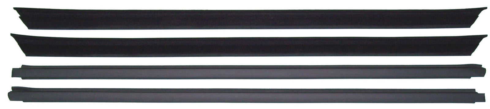 This is a 4 piece set of window sweeps (also called belt line molding, felts or fuzzies) for both front cab doors on the 1994-2002 Dodge Ram 1500, 2500 & 3500 pickup truck. The window sweeps attach to the top of the door panel on the inside and the top of the door on the outside. They have the felt or fuzzy material that touches the glass and wipe the glass as you roll the window up and down, they help keep water and debris out of the doors and hold the glass so it doesn't rattle. This is a 4 piece set that includes the inners and outers for both doors. We have an online YouTube installation video available, contact us for more information.