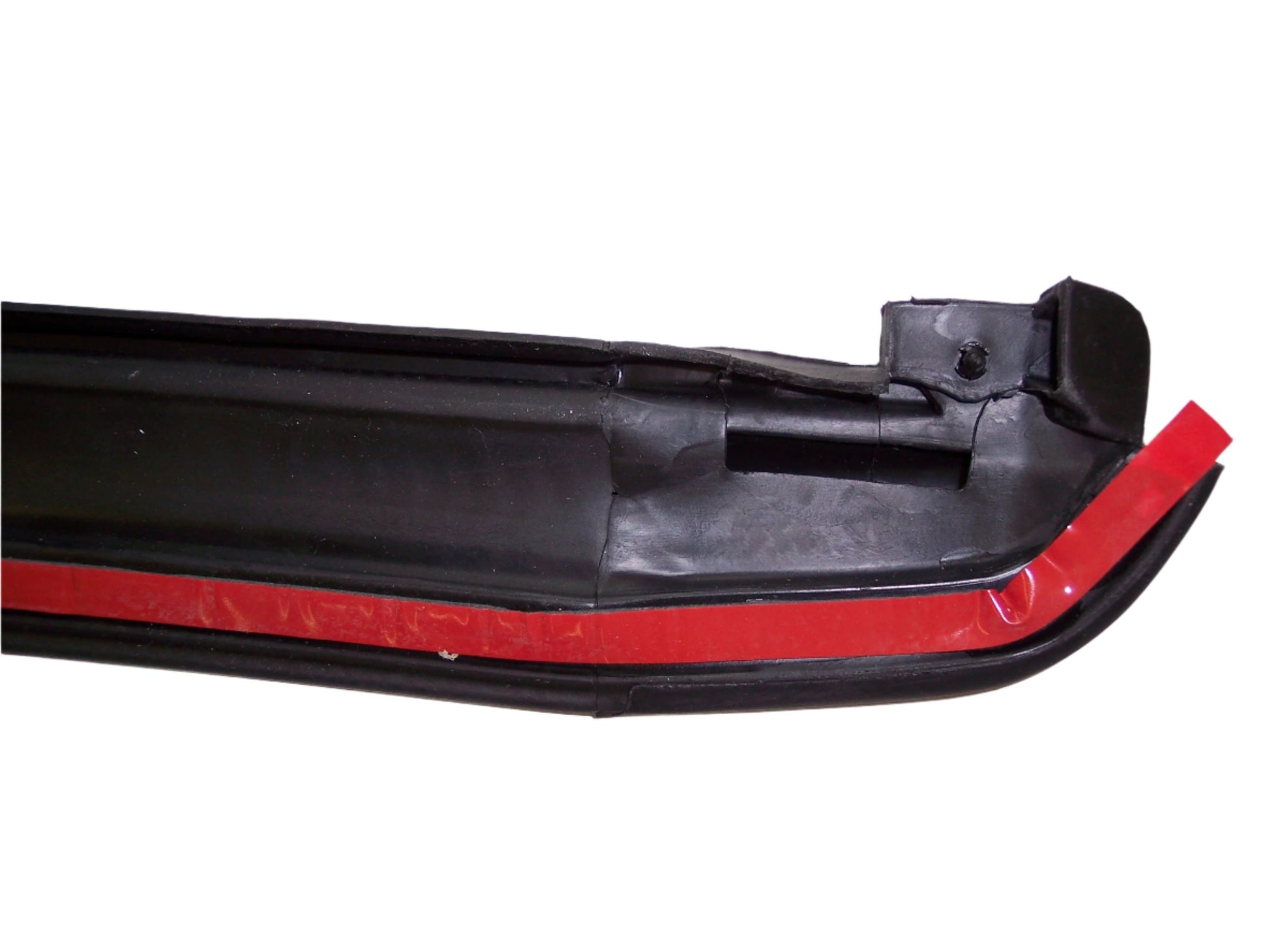 This is a front header seal for the 1997-2006 Jeep Wrangler (TJ) convertible. This is the seal that attaches to the top of the windshield frame, it seals to the bottom of the front header bow of the convertible top frame where it sits on top of the windshield frame. Comes with peel and stick adhesive already installed.