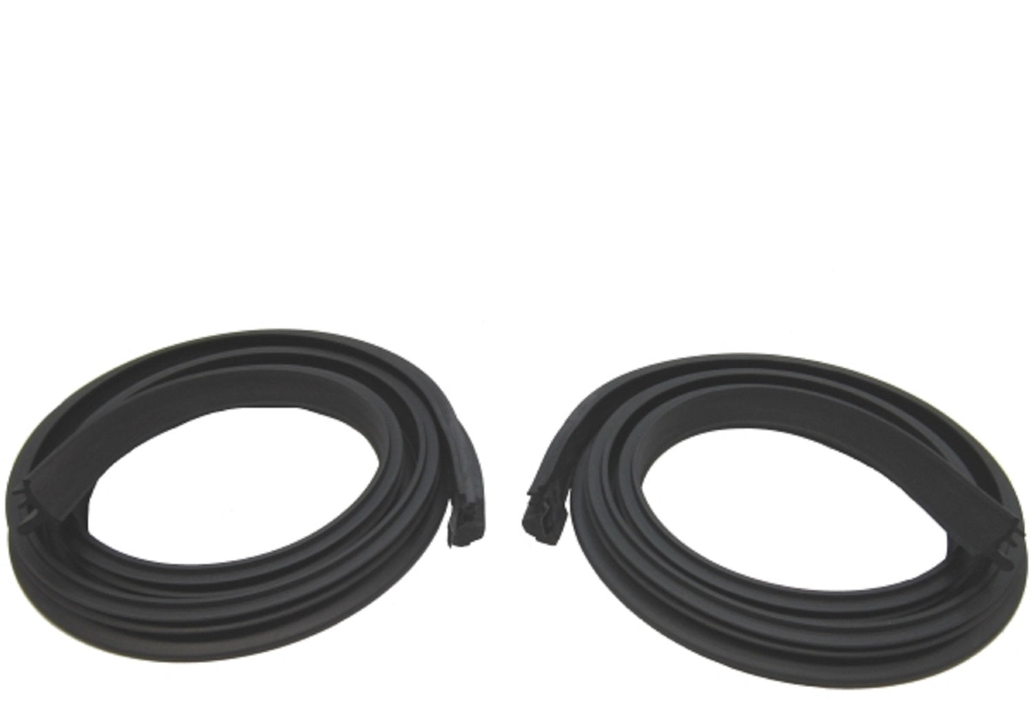 This is a pair of roof rail seals for the 1965-1966 Ford Mustang 2 door hardtop (not fastback). The roof rail seals start at the front edge of the door glass and attach to the windshield pillar and follow the roof line to the back, the side windows seal to them at the top. This seal may require weatherstrip adhesive (not included).