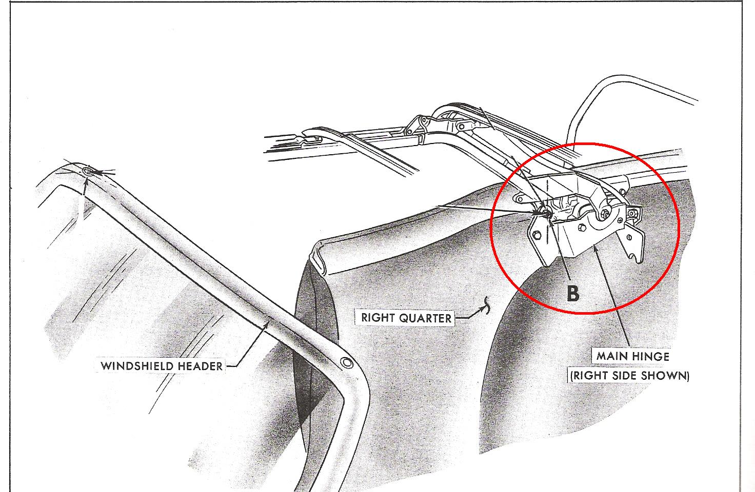 On the 1971-76 full size GM cars (also know as scissor top cars because of the unique way the frame folds), the entire convertible top frame pivots on 1 large bolt on each side of the car. This special bolt comes with 2 flanged bushings and a locking nut, if the correct bolt and bushings are not used the side rails can be out of alignment and hit each other as they fold. Convertible Top Specialists is now manufacturing a replacement bolt kit made as a duplicate of the original, you don't have to use the incorrect parts any more and risk damaging your top.